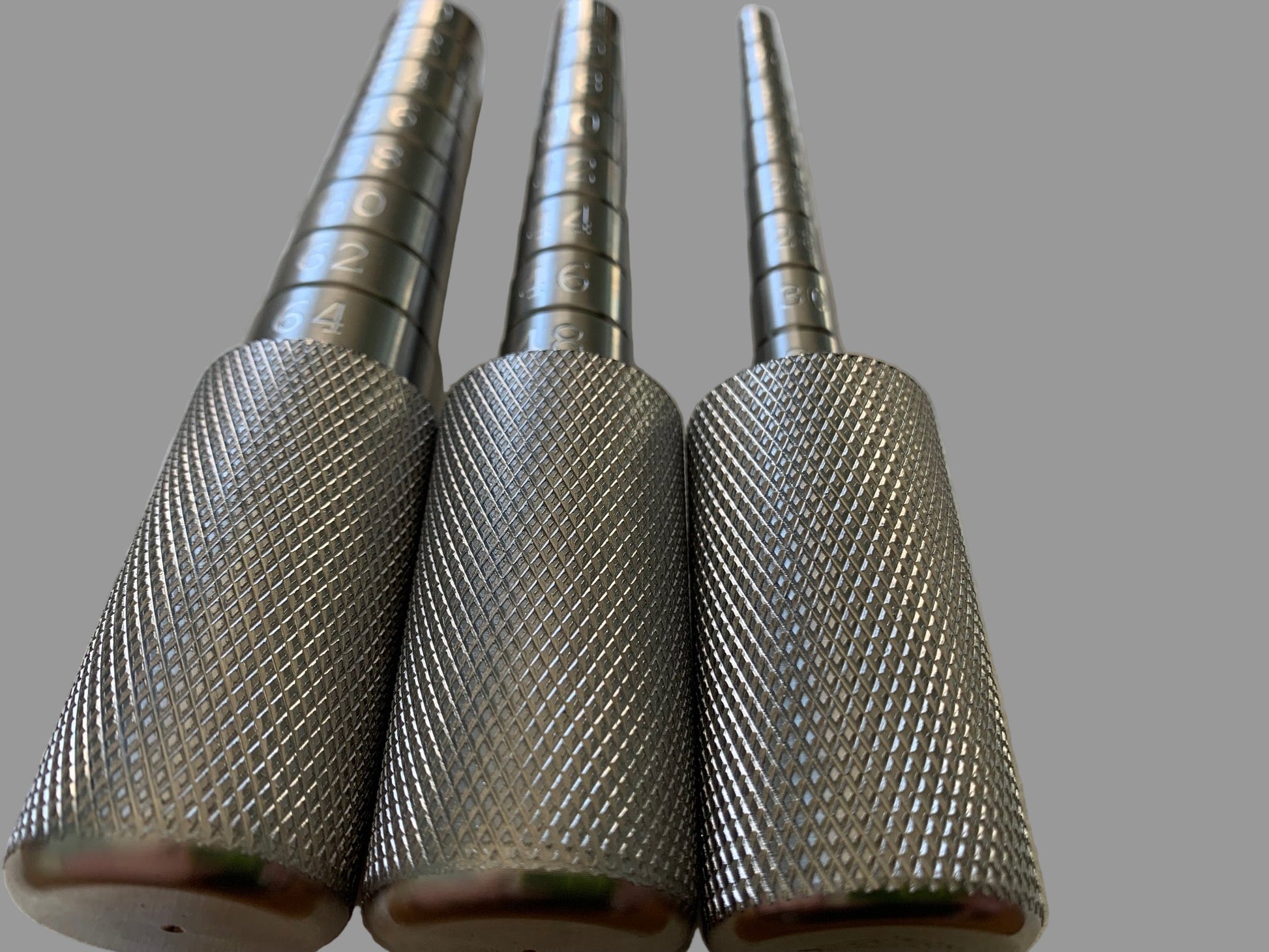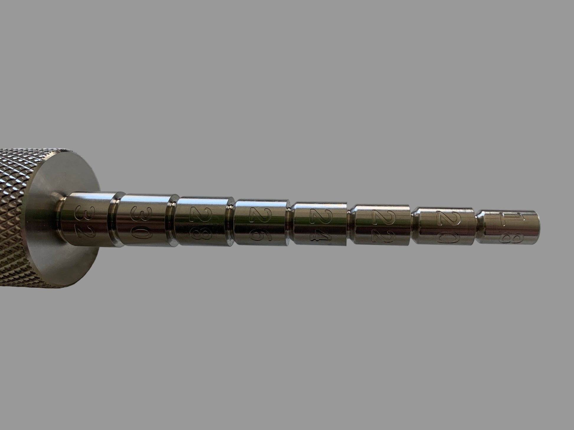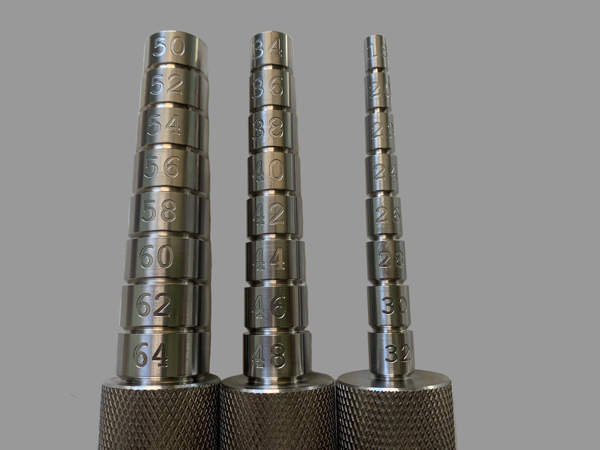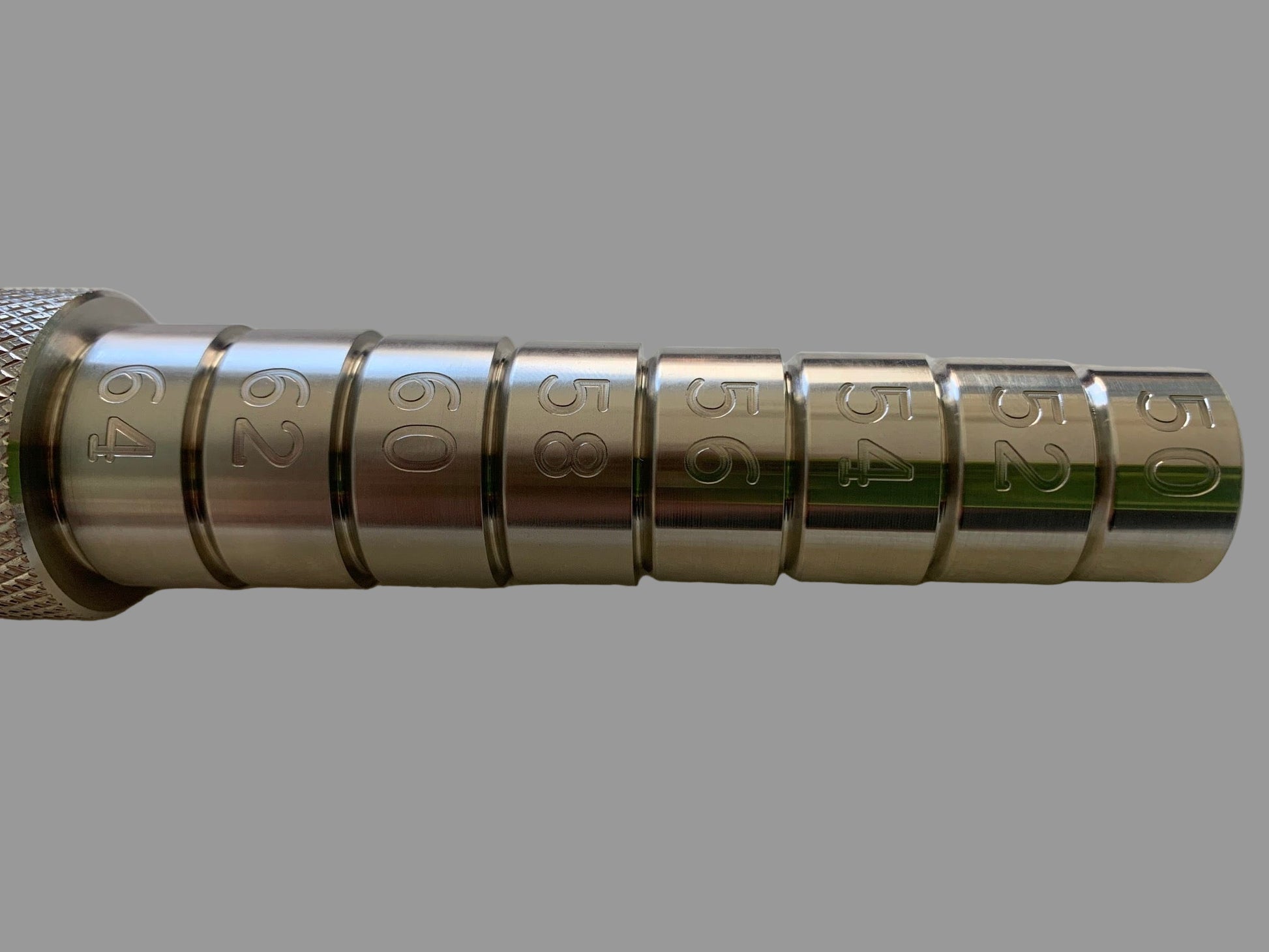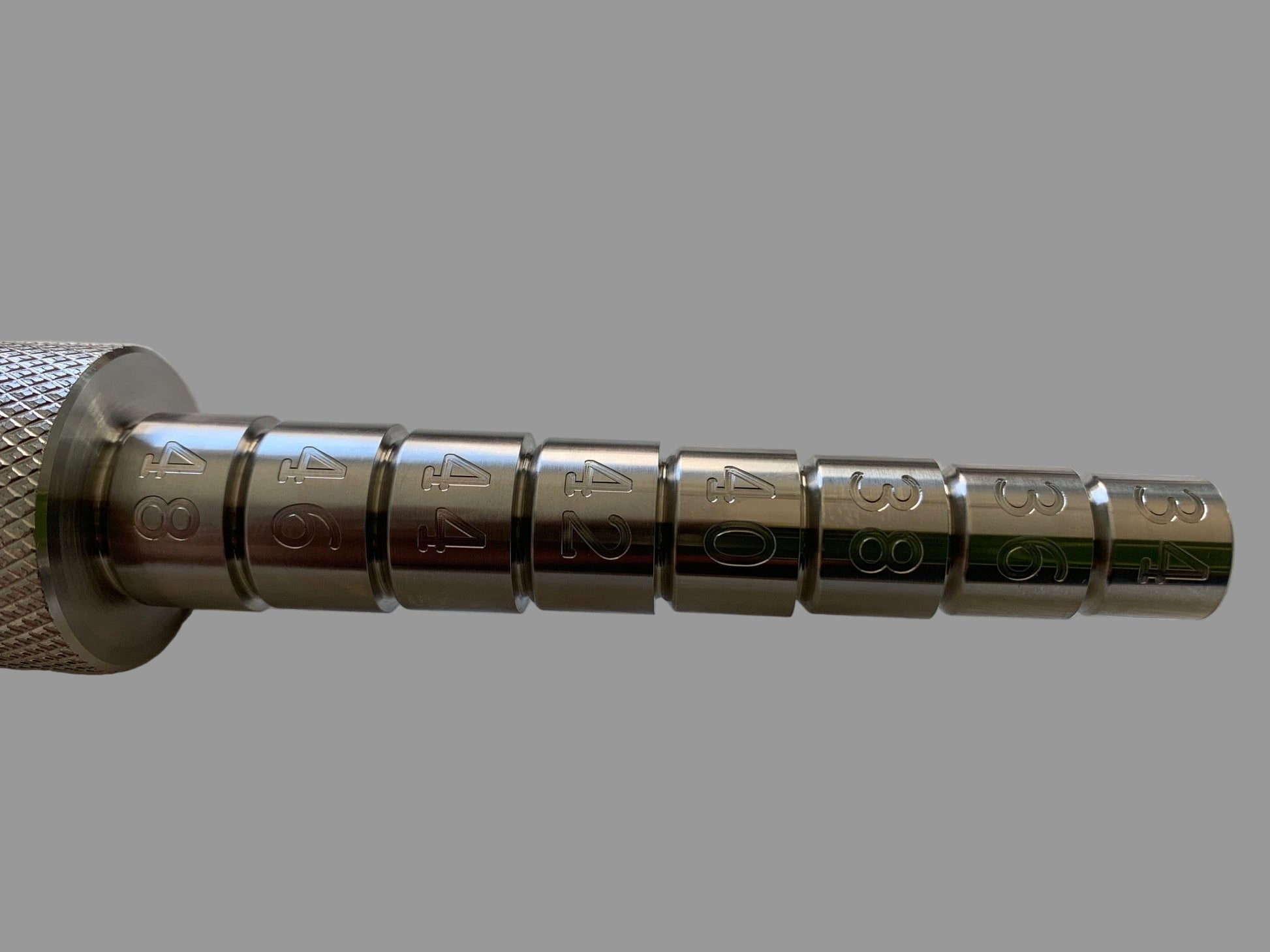 Verify choke size quick and easy with our 3pc choke gauge set. Machined from 17-4PH Stainless Steel to provide a long service life in the harsh environments of the oil and gas industry. The handles features a course knurl pattern similar to our valve bars for an excellent grip even with gloves on and each choke size is etched into the gauge so it wont wear off over time. This gauge set covers choke sizes 18-64 and they have an overall length of 6-1/2".